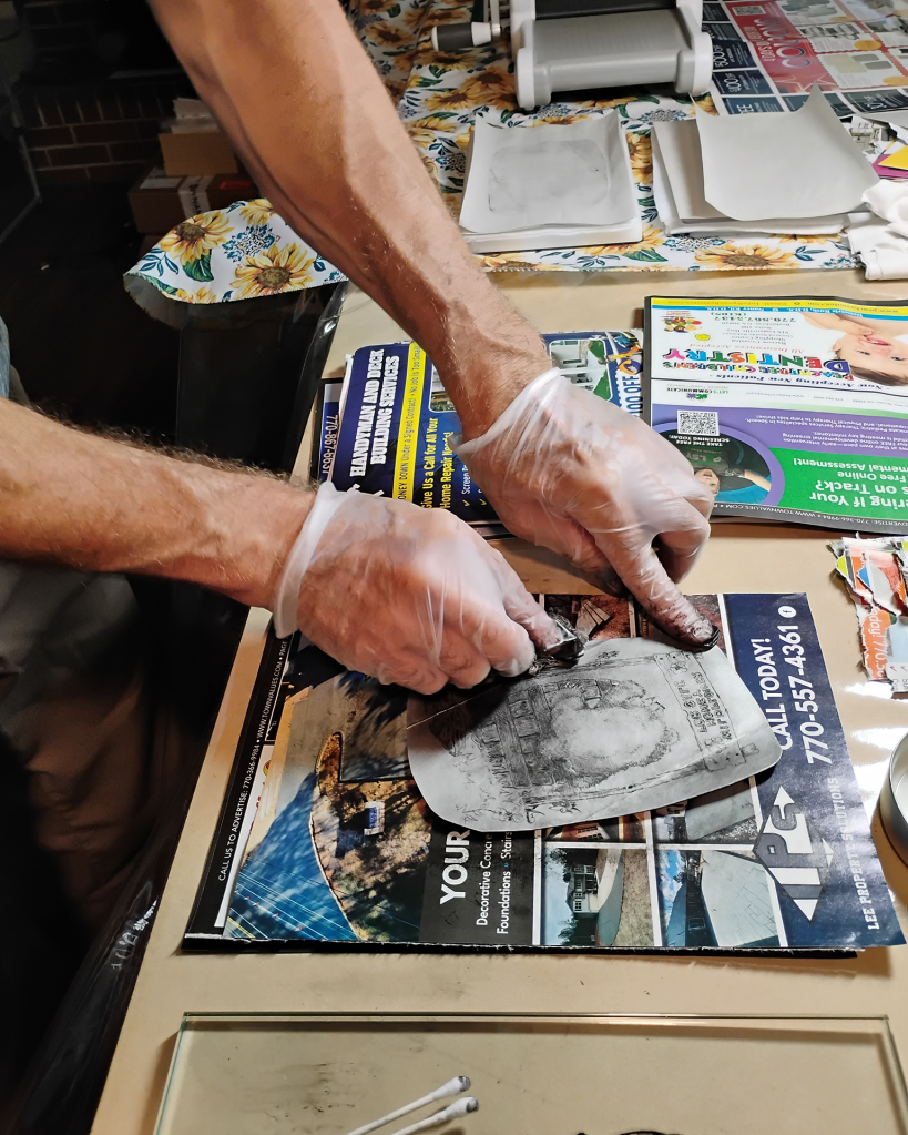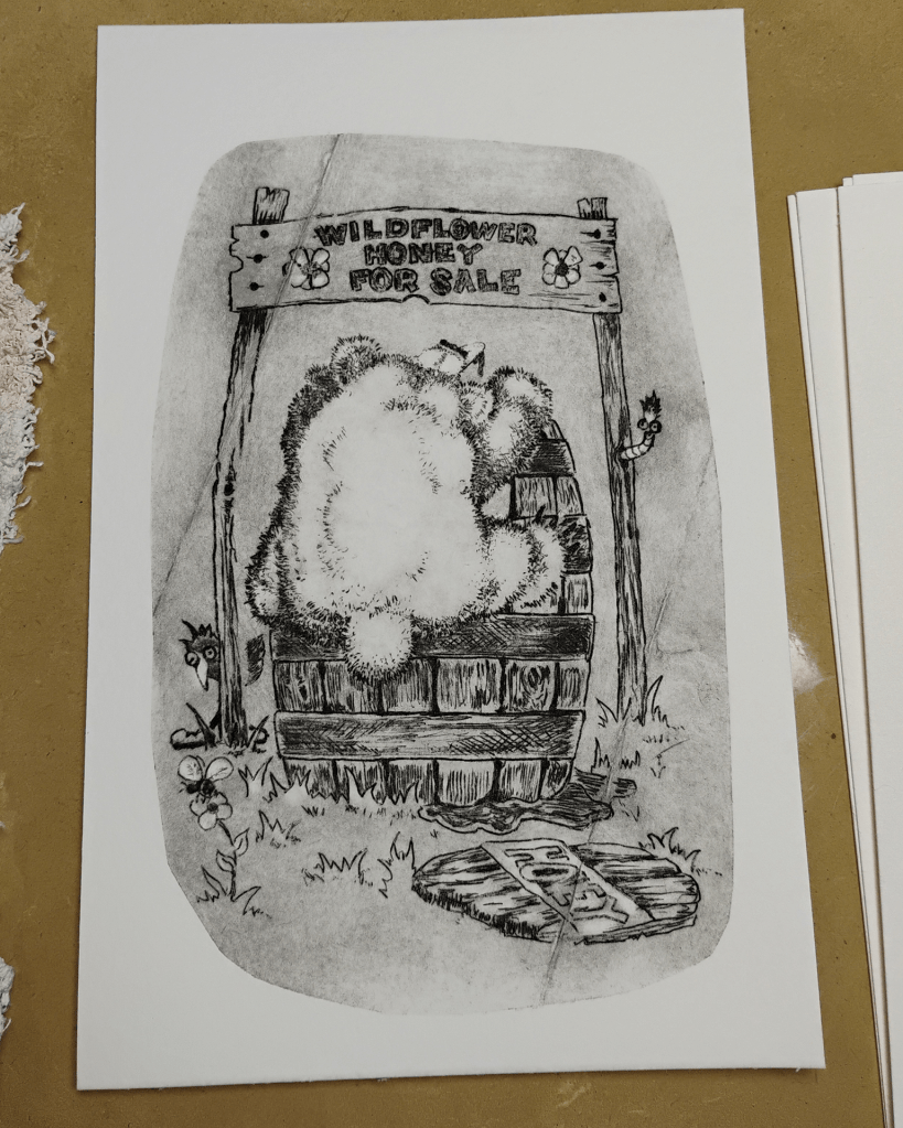 Last Sunday, the 7th of August, I had an opportunity to do a bit of intaglio printing with a fellow Shoobird contributor, Mother-Badger. We’ve been making an effort to sketch as often as possible and decided to make some prints of our doodles using Tetra Pak as our etching matrix. Sadly, Mother-Badger wasn’t satisfied with her results but will use this print run to make adjustments to the composition and post next time. I am pleased with the way the fine lines and textures came out. See what you think…
